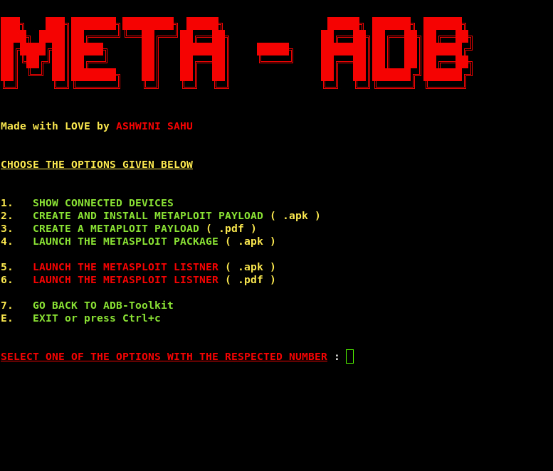 ADB-Toolkit is a BASH Script with 28 options and an METASPLOIT Section which has 6 options which is made to do easy penetration testing in Android Device. You can do preety much any thing with this script and test your android device is it safe or not. This script is made with the help of ADB (Android Debug Bridge) it’s an tool which is used for the developers for debugging the android device but as we know every thing has it’s two side a good and a bad and i’m not telling you to do bad things but be don’t do illegal things or FBI will find you.