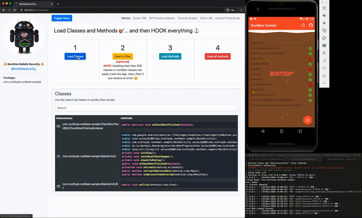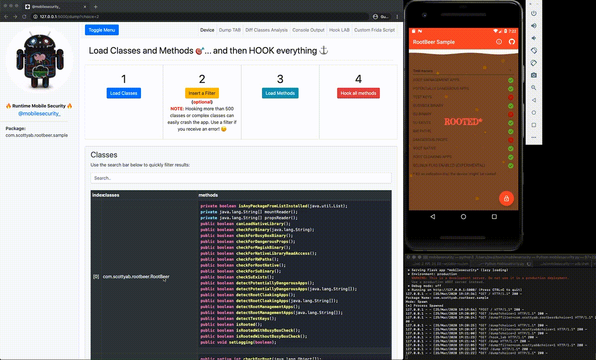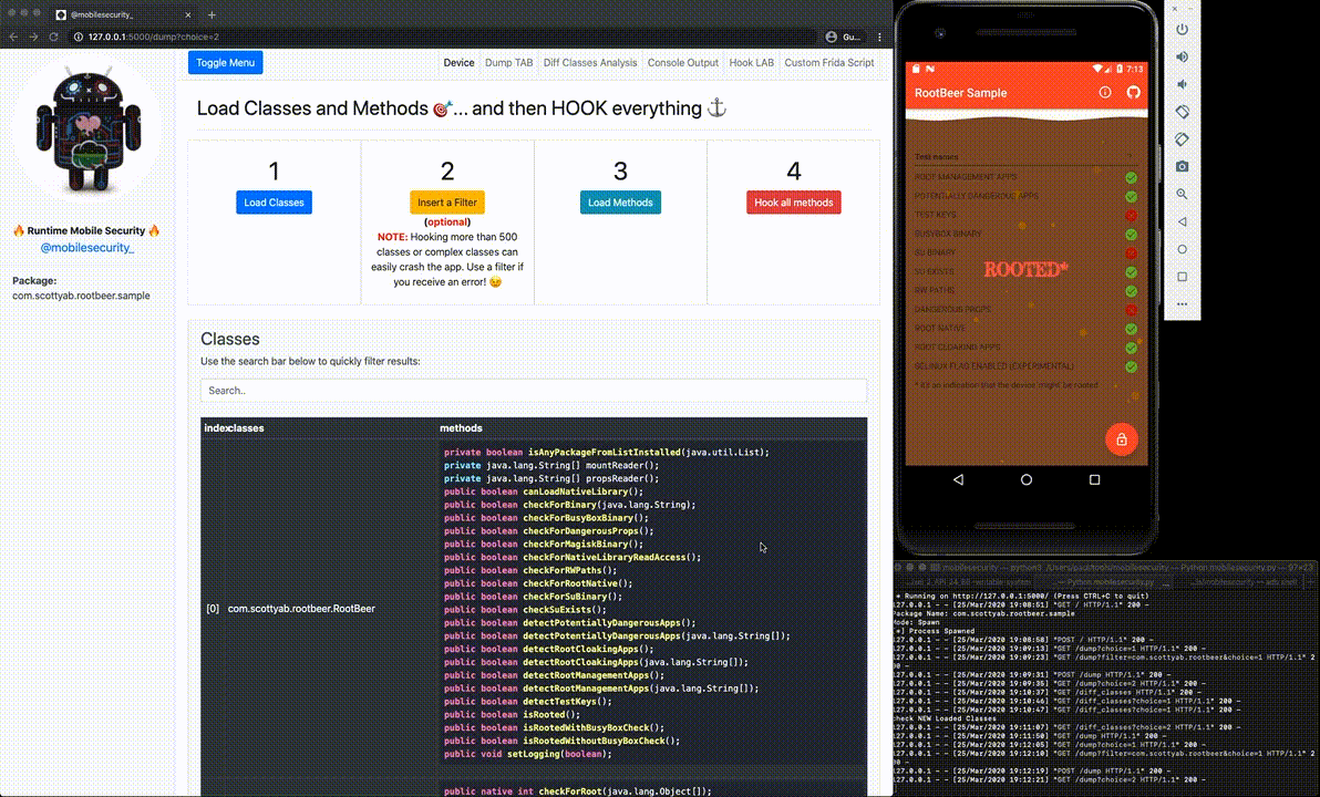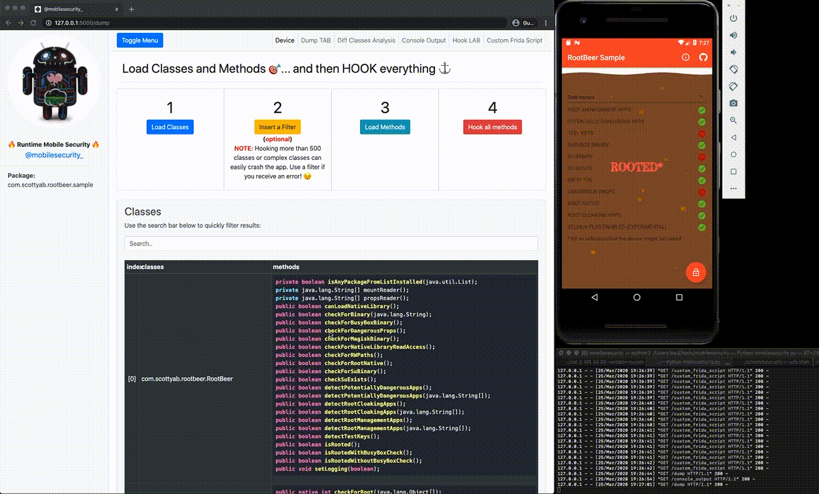 RootBeer Sample is the DEMO app used to show how RMS works. RootBeer is an amazing root detection library. I decided to use the Sample app as DEMO just to show that, as every client-side only check, its root detection logic can be easily bypassed if not combined with a server-side validation.