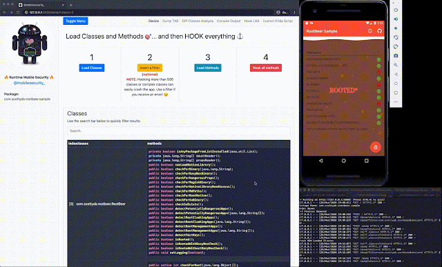 Runtime Mobile Security (RMS), powered by FRIDA, is a powerful web interface that helps you to manipulate Android Java Classes and Methods at Runtime.
