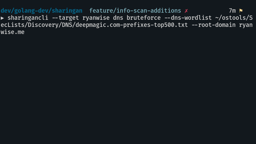 sharingancli --target targetname dns --dns-wordlist ~/path/to/wordlist --root-domain target.com