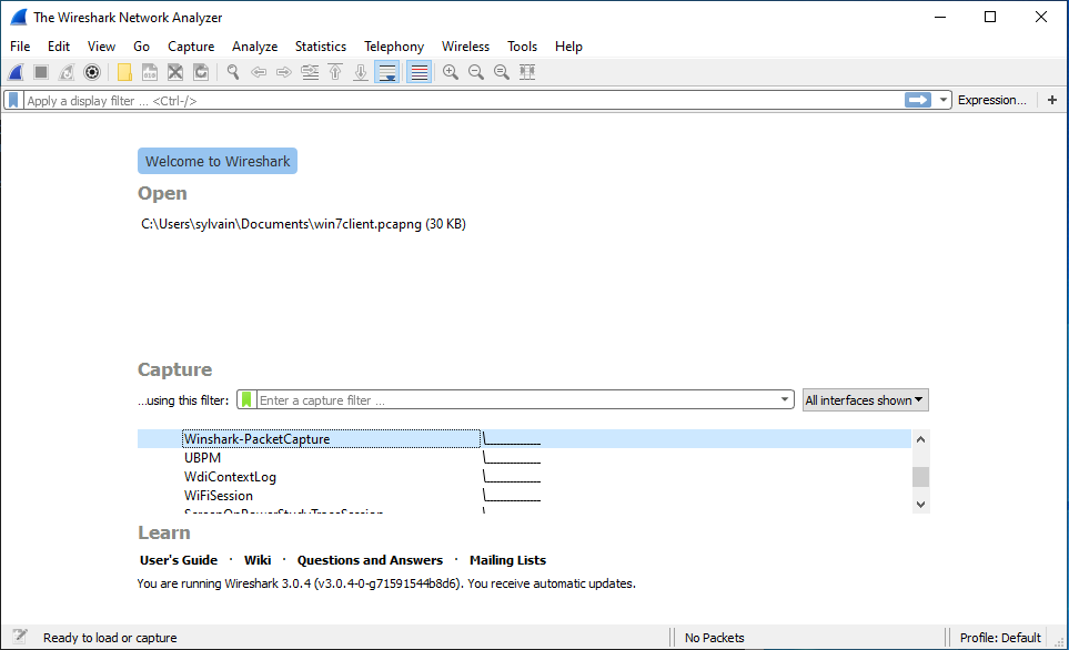 And now Winshark!!! Winshark is a simple ETW consumer. The real underlying consumer is libpcap, (wpcap.dll for Windows) which is used by dumpcap.exe which is the process in charge of packet capture.